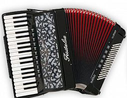 Четырехголосый аккордеон с голосами ручной работы: 37 клавиша, 96 басовых клавиш. Первая нота «Фа», последняя – «Фа»
