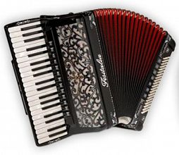 Четырехголосый аккордеон с ломаной декой и голосами особенной ручной работы: 41 клавиш, 120 басовых клавиш. Первая нота «Фа», последняя – «Ля»
