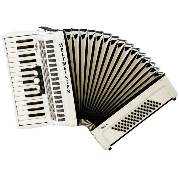 Диапазон звучания аккомпанемента: от “До” большой октавы до “Ре-диез” первой октавы. Weltmeister Rubin по своим размерам не отличается от «Weltmeister Perle»: клавиатура мелодии выполнена с уменьшенной мензурой, что позволяет даже самому маленькому музыканту приобрести ощущение правильной позиции руки на клавиатуре аккордеона. Благодаря уменьшенным клавишам нотный диапазон в правой руке, при тех же размерах и весе Weltmeister Rubin, увеличился на большую терцию вниз, и теперь его вполне достаточно для исполнения большинства несложных произведений в начальных классах музыкальной школы. Ремни и футляр в комплекте.
