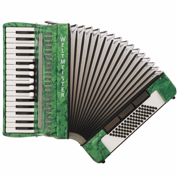 Диапазон звучания мелодии от “Соль” большой октавы до “Ми” 3-й октавы, диапазон звучания аккомпанемента от “До” большой октавы до “Ре-диез” 1-й октавы. Weltmeister Achat 72 как нельзя лучше подходит для игры стоя, не отягощая музыканта лишними, зачастую ненужными килограммами. Возможностей Weltmeister Achat 72 вполне достаточно для исполнения большинства классических произведений и популярной музыки. Ремни и футляр в комплекте.