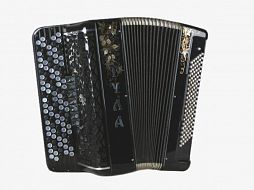 Баян 107/64х120/55-III – 7, пятирядный, трехголосый, кусковая планка многотембровый, с готово-выборным аккомпанементом, 440х220х470 мм. масса 12,5 кг