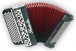 Трехголосый профессиональный баян хроматического строя: 49 (82) клавиш, 96 басовых клавиш, 6 регистров в правой руке, 3 в левой. Вес 8.3 кг