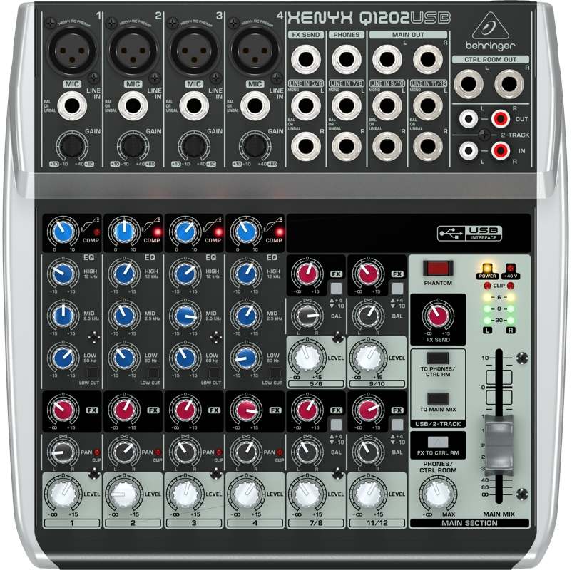 Behringer Xenyx Q1002USB-EU Пульт микшерный малошумящий премиум-класса (2 моновхода, 4 стереовхода, 2 AUX-шины), USB/аудио интерфейс, микрофонные предусилители XENYX и компрессоры, 3х полосный "British" эквалайзер