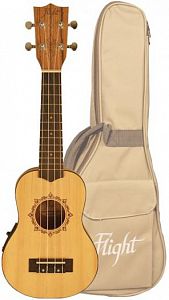 FLIGHT DUS 320 CEQ SP/ZEB - укулеле, сопрано, цвет натурал, верхняя дека - ель, корпус - зебрано, звукосниматель Belkat UK300, встроенный тюнер, чехол в комплекте